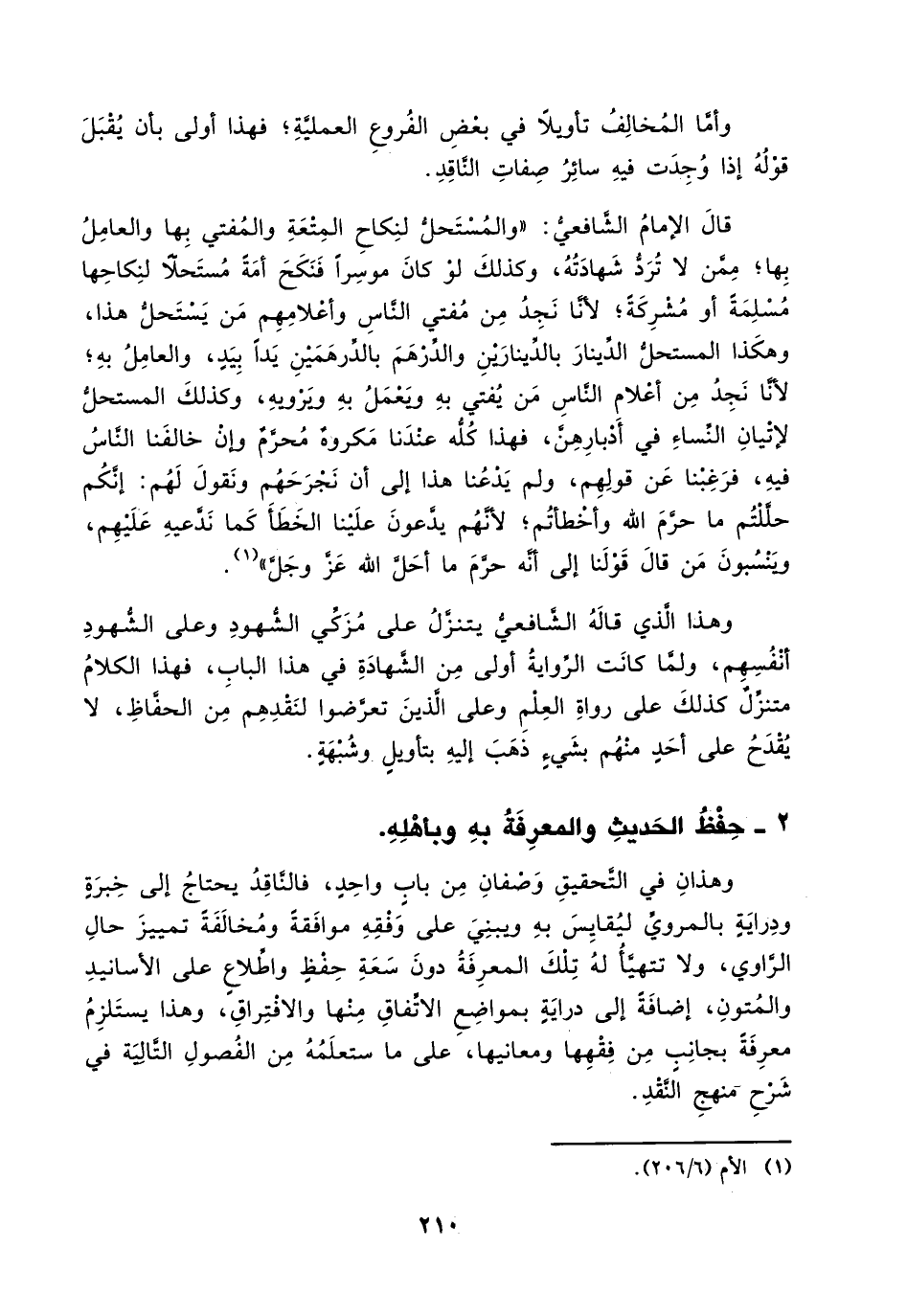 وهذا الذي قاله الشافعي يتنزل على مزكي الشهود وعلى الشهود أنفسم، ولما كانت الرواية أولى من الشهادة في هذا الباب، فهذا الكلام متنزل كذلك على رواة العلم وعلى الذين تعرضوا لنقدهم من الحفاظ، لا يُقْدح على أحد منهم بشيء ذهب إليه بتأويل وشبهة.