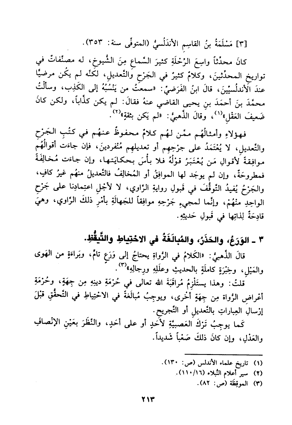 قلت: وهذا يستلزم مراقبة الله تعالى في حرمة دينه من جهة، وحرمة أعراض الرواة من جهة أخرى، ويوجب مبالغة في الاحتياط في التحقق قبل إرسال العبارات بالتعديل أو التجريح.