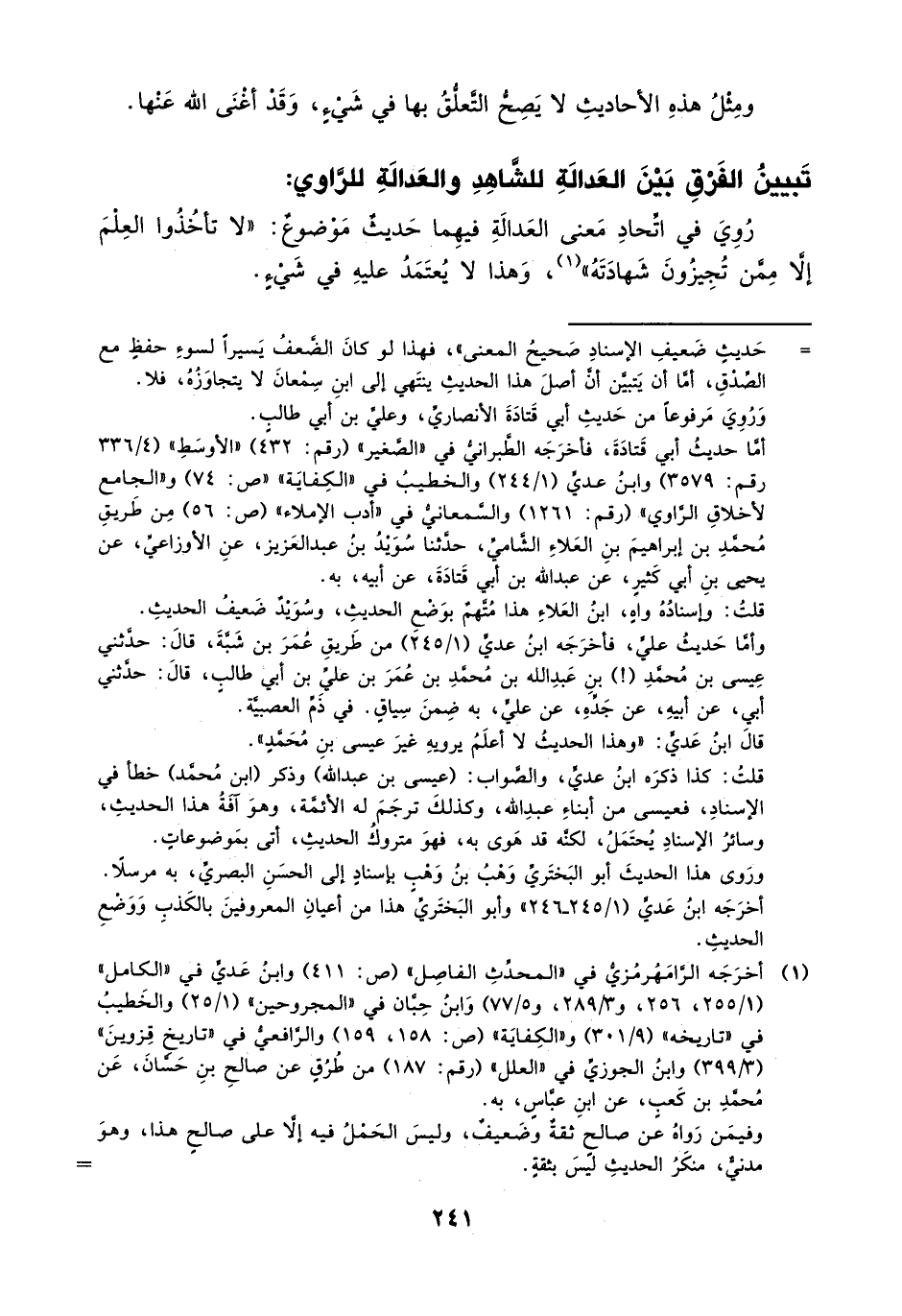 تبيين الفرق بين العدالة للشاهد والعدالة للراوي: