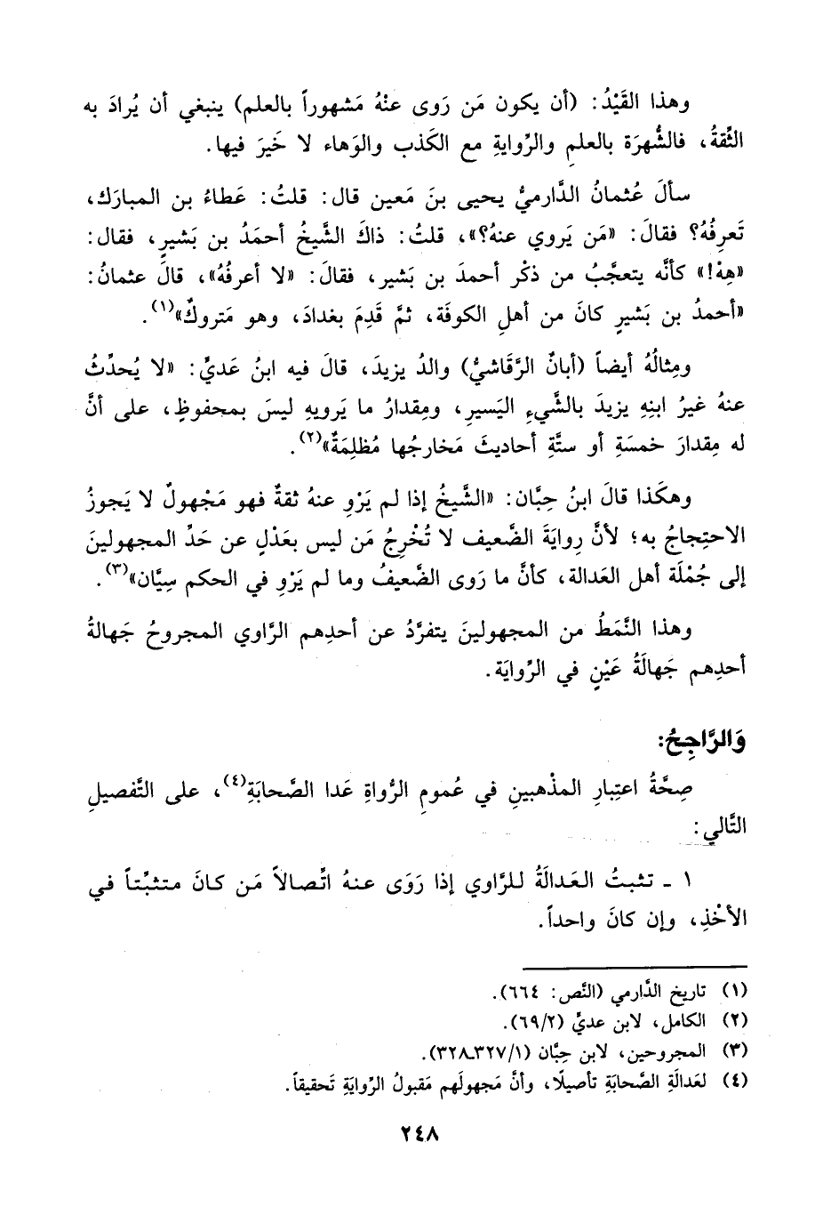 1 _ تثبت العدالة للراوي إذا روى عنه اتصالاً من كان متثبتاً في الأخذ، وإن كان واحداً.