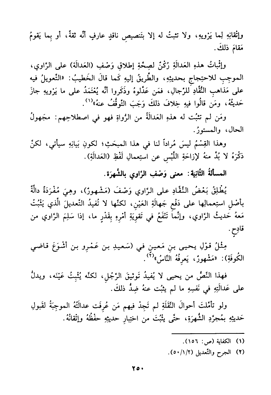 المسألة الثانية: معنى وصف الراوي بالشهرة.