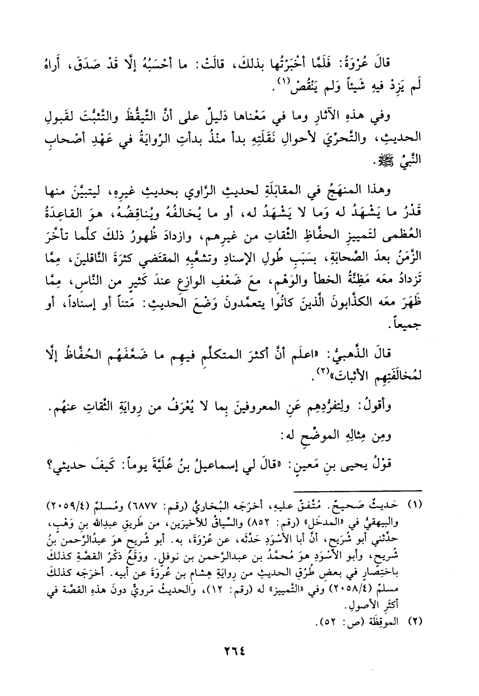 (¬1) حديث صحيح. مُتفق عليه، أخرجه البُخاري (رقم: 6877) ومسلم (4/ 2059) والبيهقي في " المدخل " (رقم: 852) والسياق للأخيرين، من طريق عبد الله بن وهب، حدثني أبو شريح، أن أبا الأسود حدثه، عن عروة، به. أبو شريح هو عبد الرحمن بن شريح، وأبو الأسود هو محمد بن عبد الرحمن بن نوفل. ووقع ذكر القصة كذلك باختصار في بعض طُرق الحديث من رواية هِشام بن عُروة عن أبيه. أخرجه كذلك مسلم (4/ 2058) وفي " التمييز " له (رقم: 12)، والحديث مرويٌّ دون هذه القصة في أكثر الأصول.