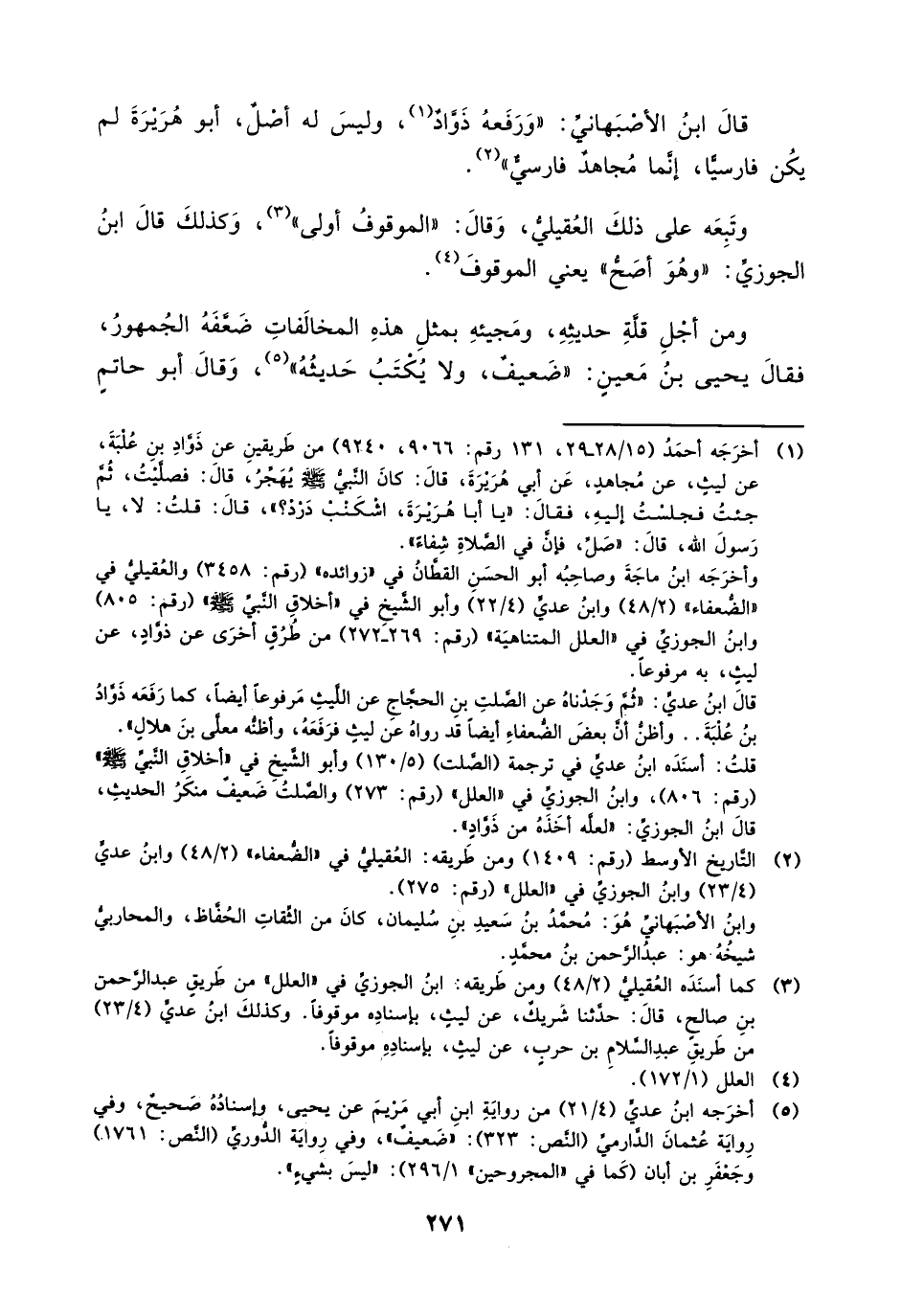 قال ابن الأصبهاني: " ورفعه ذوَّاد (¬1)، وليس له أصل، أبو هريرة لم يكن فارسياً إنما مجاهد فارسي " (¬2).