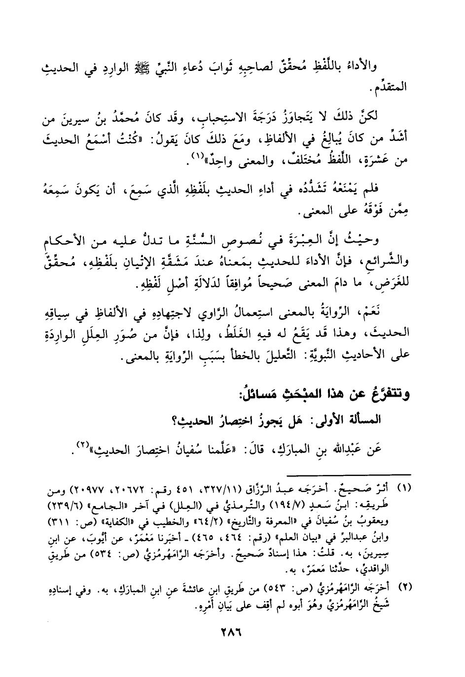 المسألة الأولى: هل يجوز اختصار الحديث؟