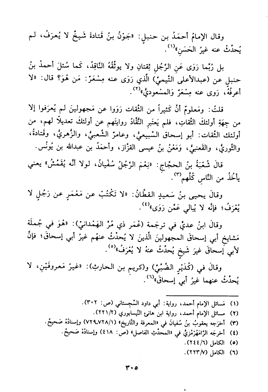 قلت: ومعلوم أن كثير من الثقات رووا عن المجهولين لم يعرفوا إلا من جهة أولئك الثقات، فلم يعتبر النقاد روايتهم عن أولئك تعديلاً لهم، من أولئك الثقات: أبو إسحاق السبيعي، وعامر الشعبي، والزهري، وقتادة، والثوري، والقعنبي، ومعن بن عيسى القزاز، وأحمد بن عبد الله بن يونس.