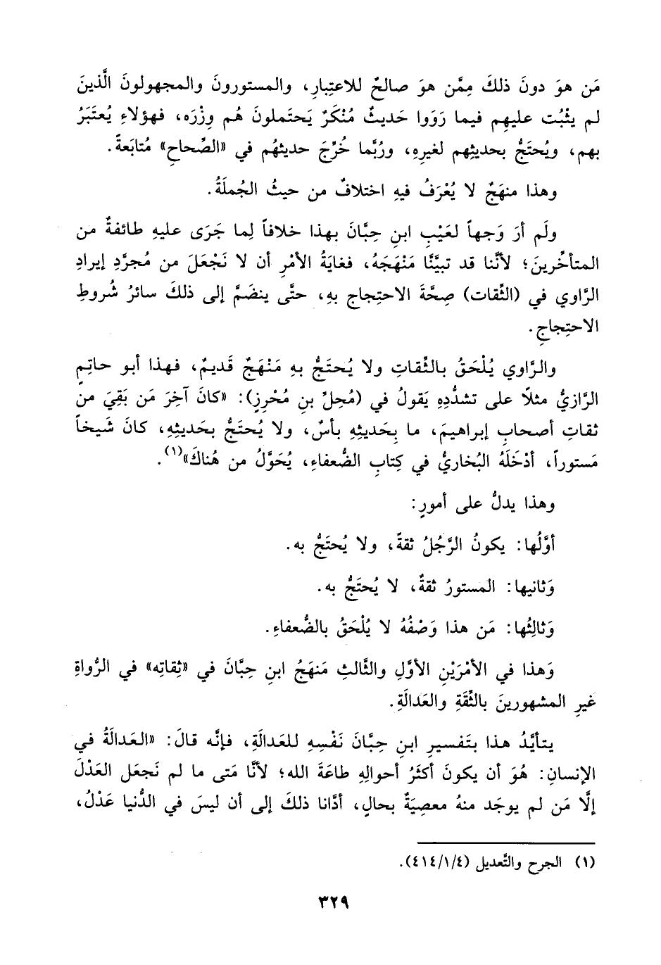 من دون ذلك ممن هو صالح للاعتبار، والمستورون والمجهولون الذين لم يثبت عليهم فيما رووا حديث منكر يحتملون هم وزره، فهؤلاء يعتبر بهم، ويحتج بحديثهم لغيره، وربما خرج حديثهم في " الصحاح " متابعة.