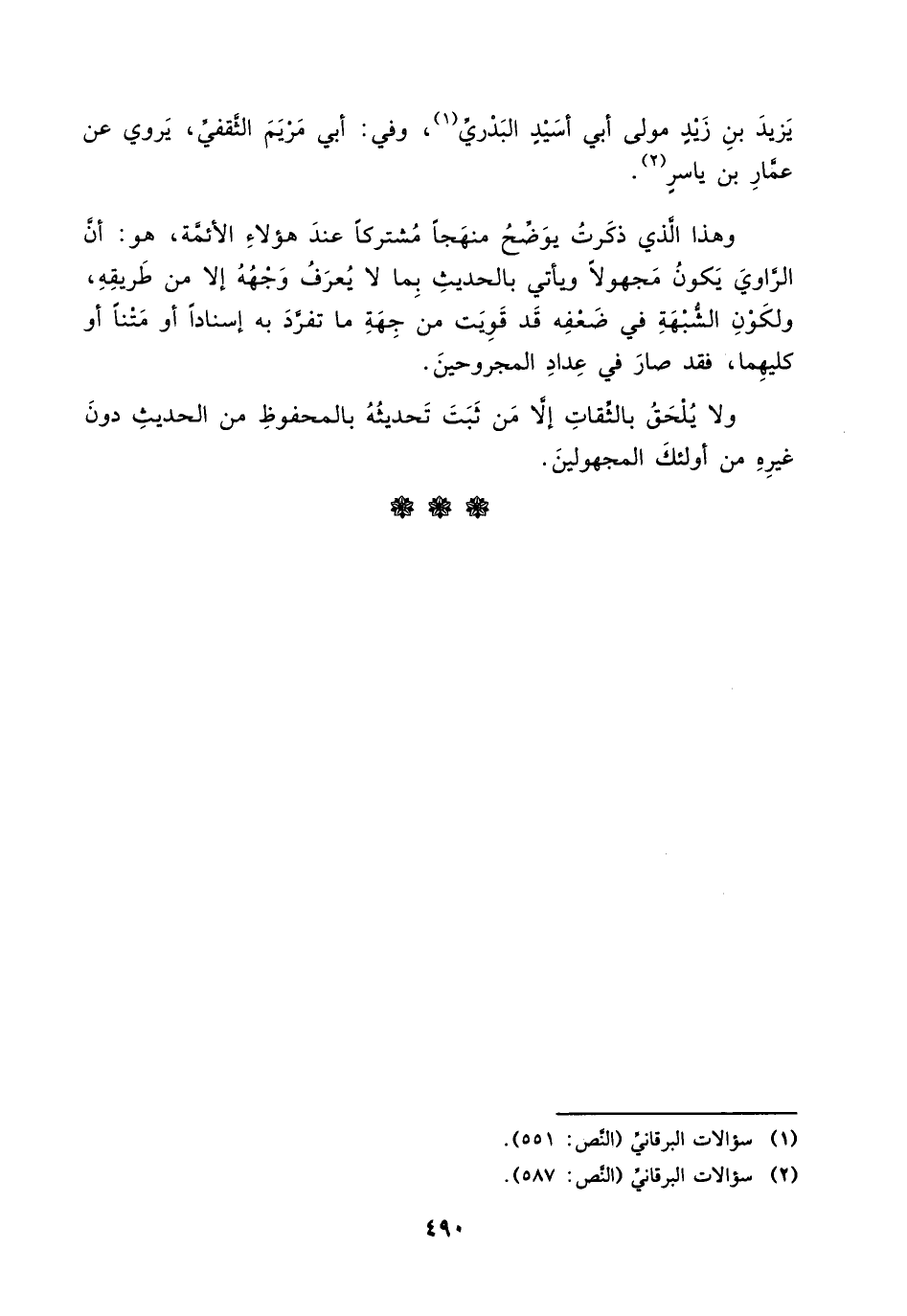 ولا يلحق بالثقات إلا من ثبت تحديثه بالمحفوظ من الحديث دون غيره من أولئك المجهولين.