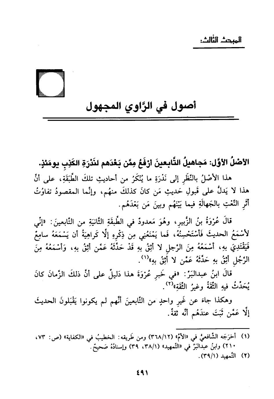 هذا الأصل بالنظر إلى ندرة ما ينكر من أحاديث من أحاديث تلك الطبقة، على أن هذا لا يدل على قبول حديث من كان كذلك منهم، إنما المقصود تفاوت أثر النعت بالجهالة فيما بينهم وبين من بعدهم.