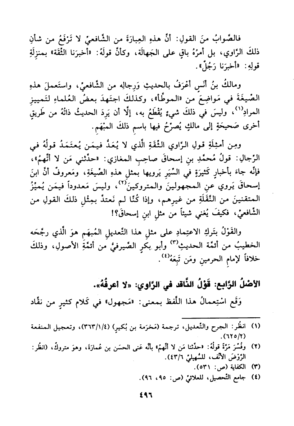 الأصل الرابع: قول الناقد في الراوي: " لا أعرفه ".