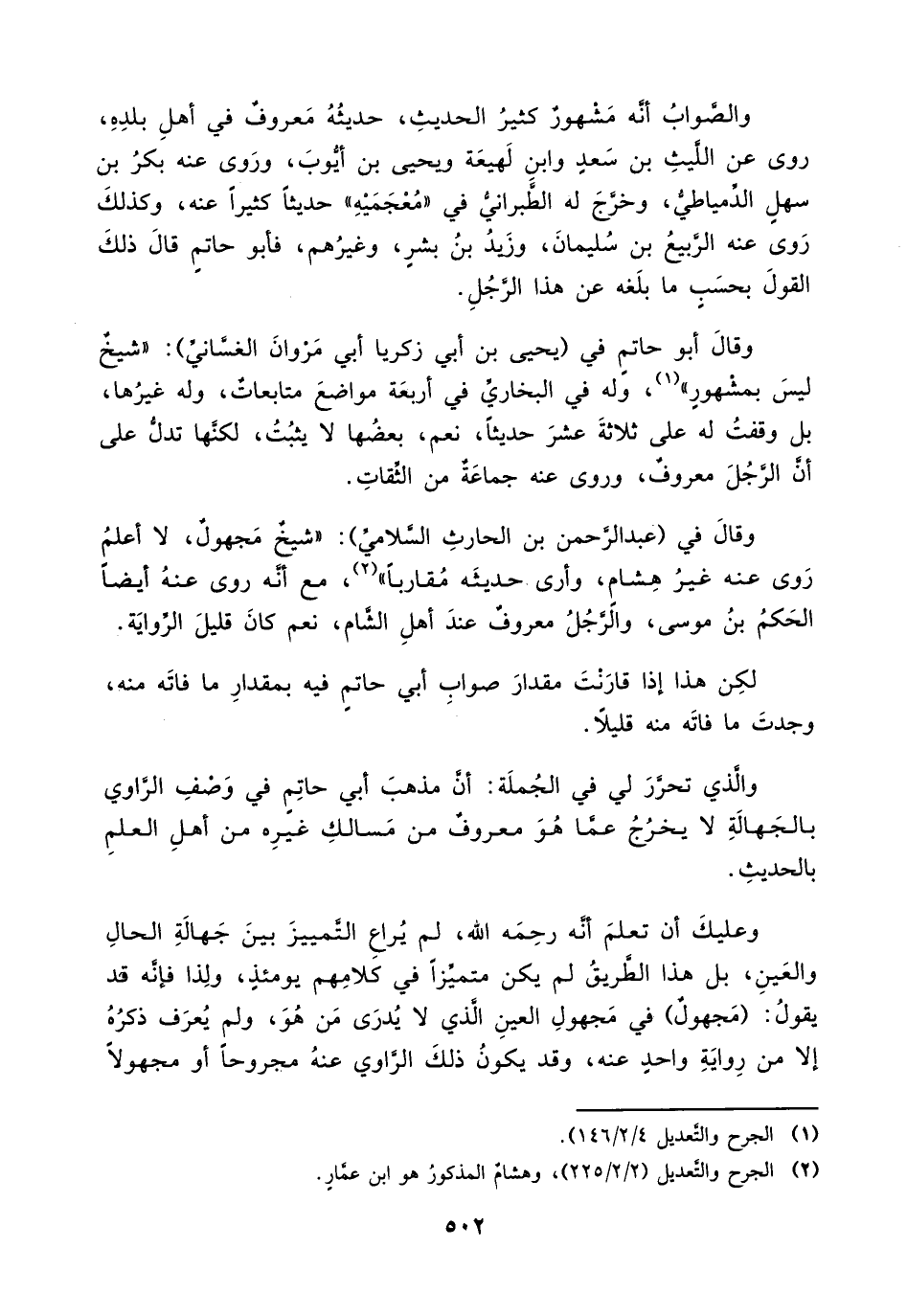 (¬2) الجرح والتعديل (2/ 2 / 225)، وهشام المذكور هو ابن عمار.