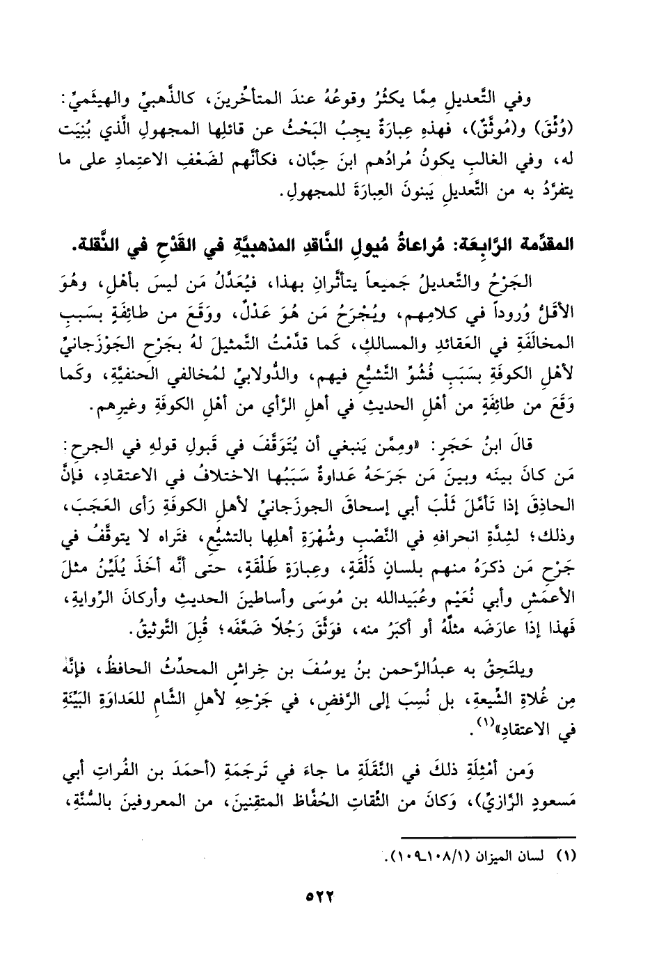 المقدمة الرابعة: مراعاة ميول الناقد المذهبية في القدح في النقلة