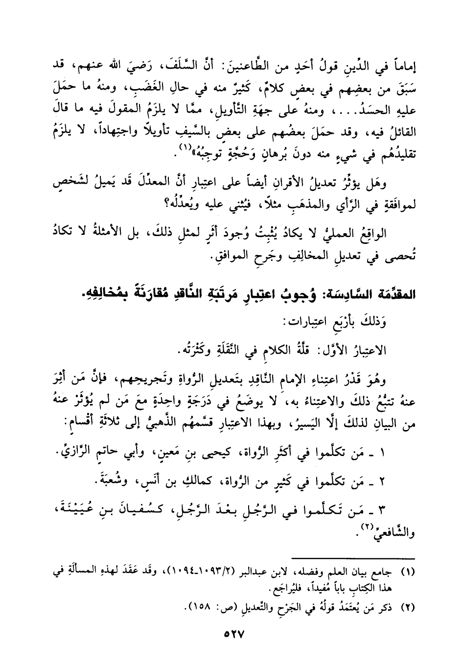 المقدمة السادسة: وجوب اعتبار مرتبة الناقد مقارنة بمخالفة.