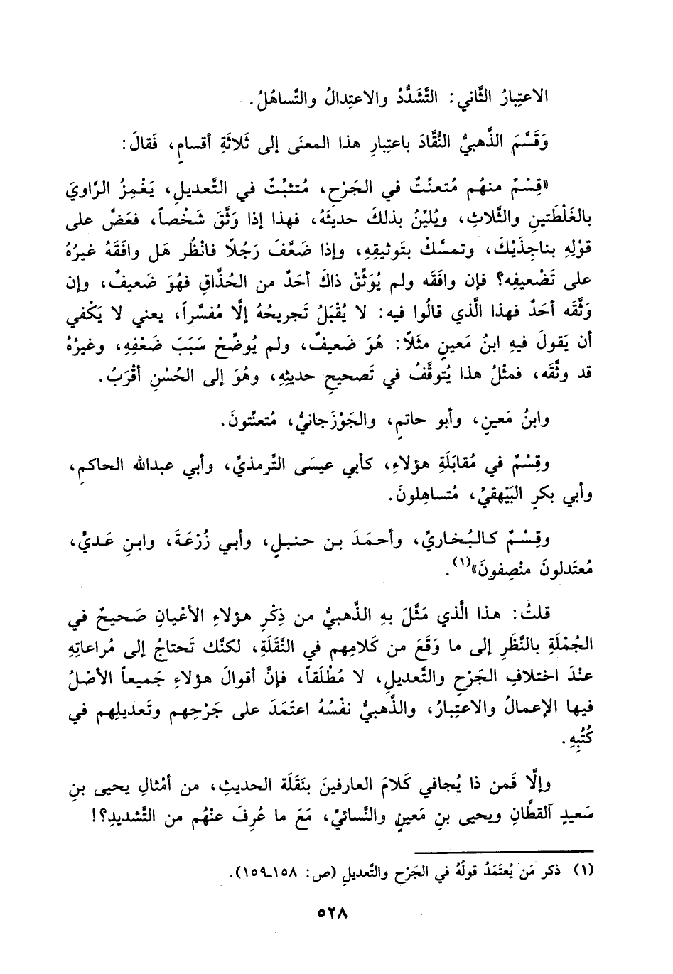 (¬1) ذكر من يُعتمد قولُه في الجرْح والتعديل (ص: 158 _ 159).