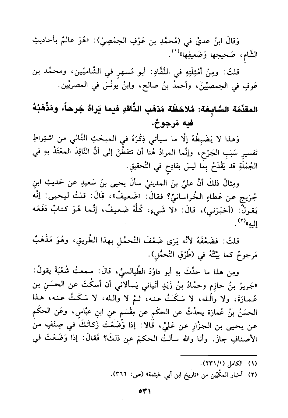 المقدمة السابعة: ملاحظة مذهب الناقد فيما يراه جرحاً، ومذهبه فيه مرجوح