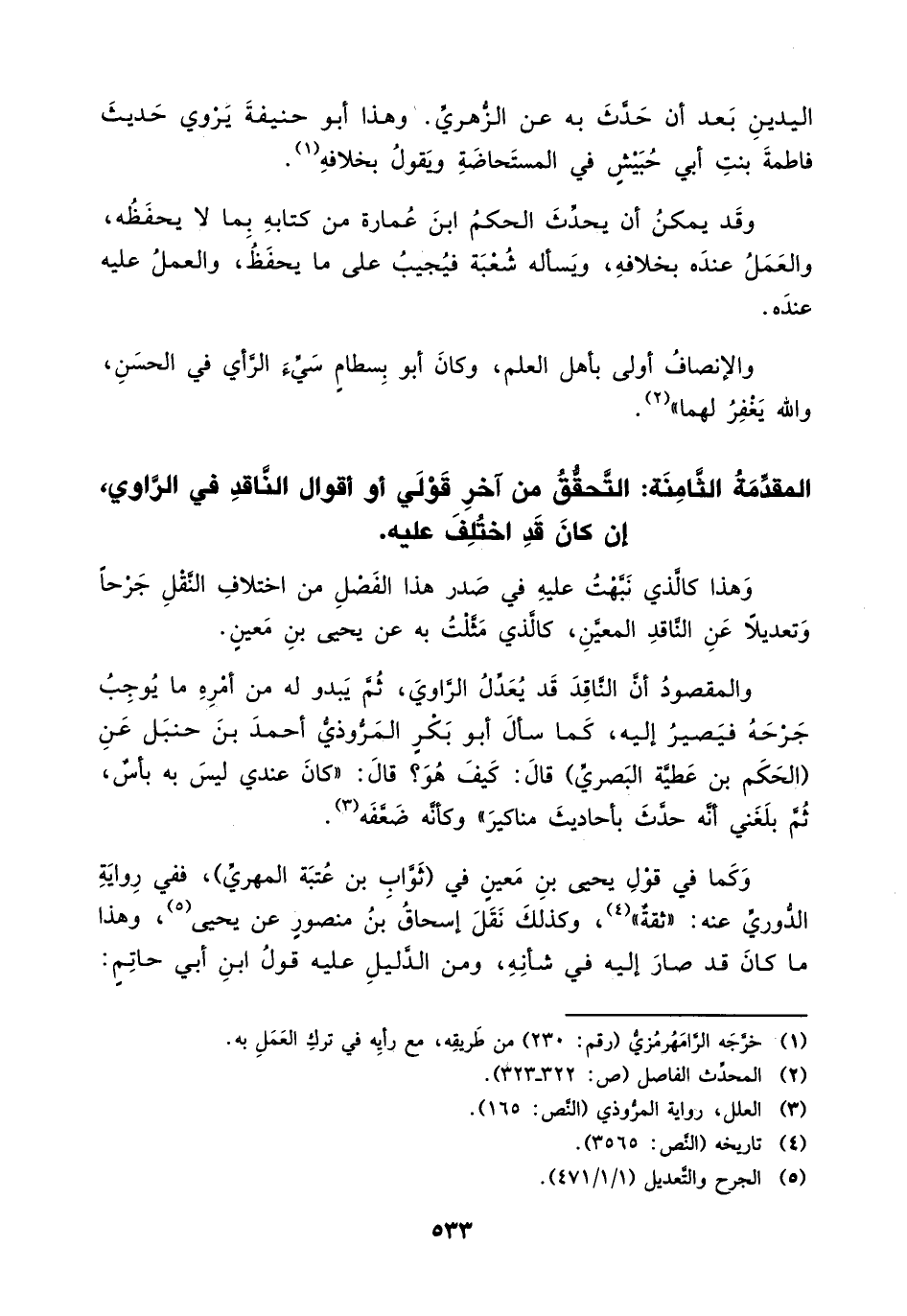 المقدمة الثامنة: التحقق من آخر قولي أو أقوال الناقد في الراوي، إن كان قد اختلف عليه