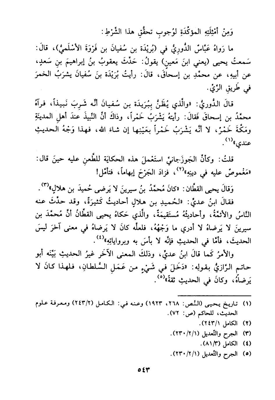 (¬1) تاريخ يحيى (النص: 268، 1923) وعنه في: الكامل (2/ 243) ومعرفة علوم الحديث، للحاكم (ص: 72).