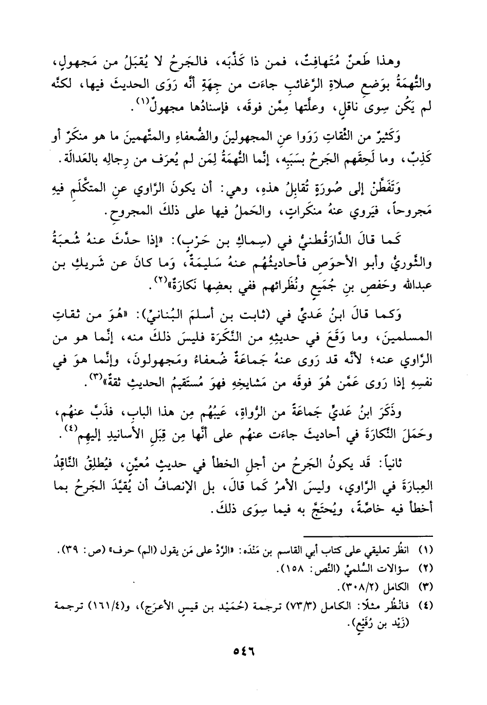 (¬4) فانظر مثلاً: الكامل (3/ 73) ترجمة (حُميد بن قيس الأعرج)، و (4/ 161) ترجمة (زيد بن رُفيع).