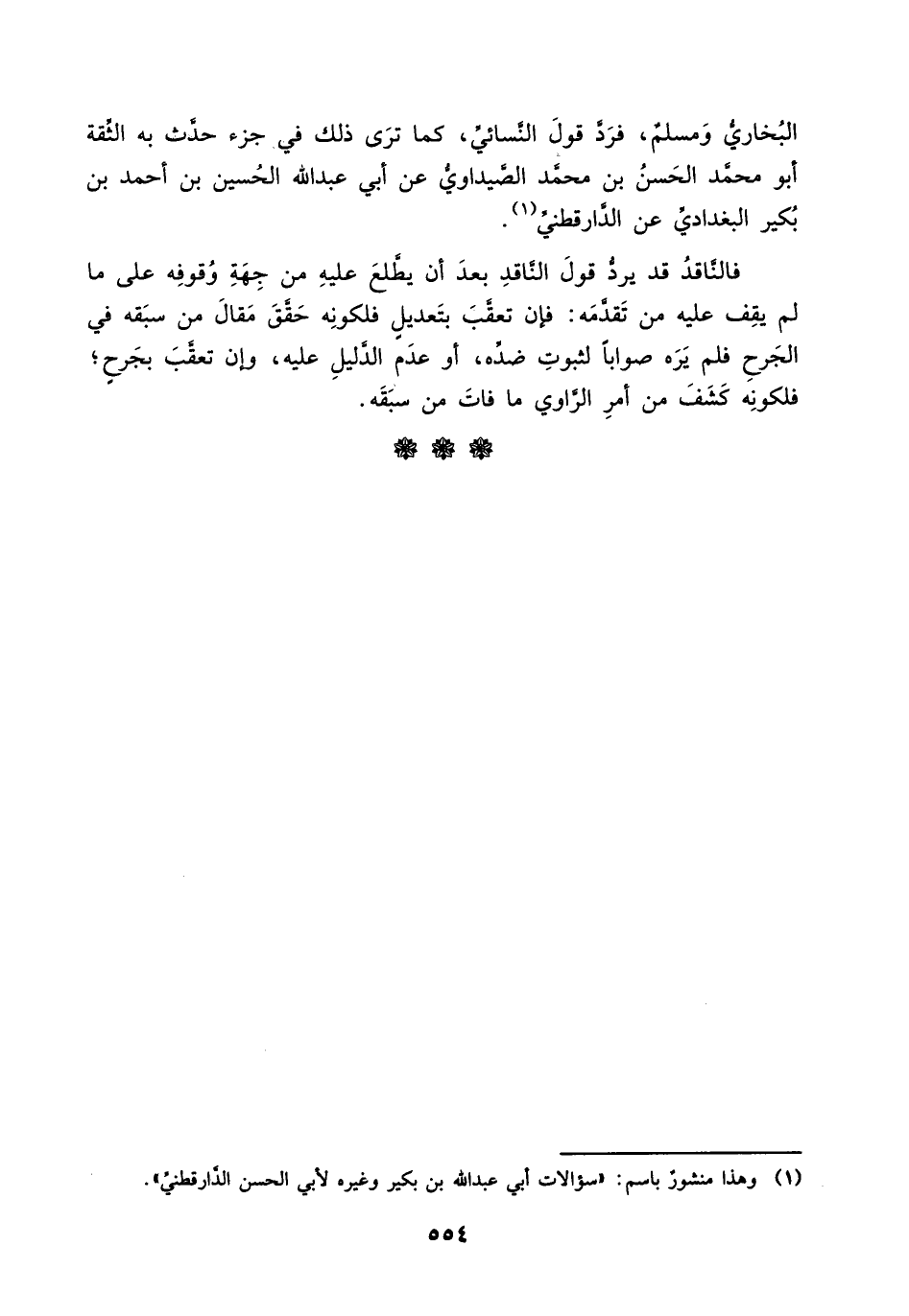 البخاري ومسلم، فرد قول النسائي، كما ترى ذلك في جزء حدث به الثقة أبو محمد الحسن بن محمد الصيداوي عن أبي عبد الله الحسين بن أحمد بن بكير البغدادي عن الدارقطني (¬1).