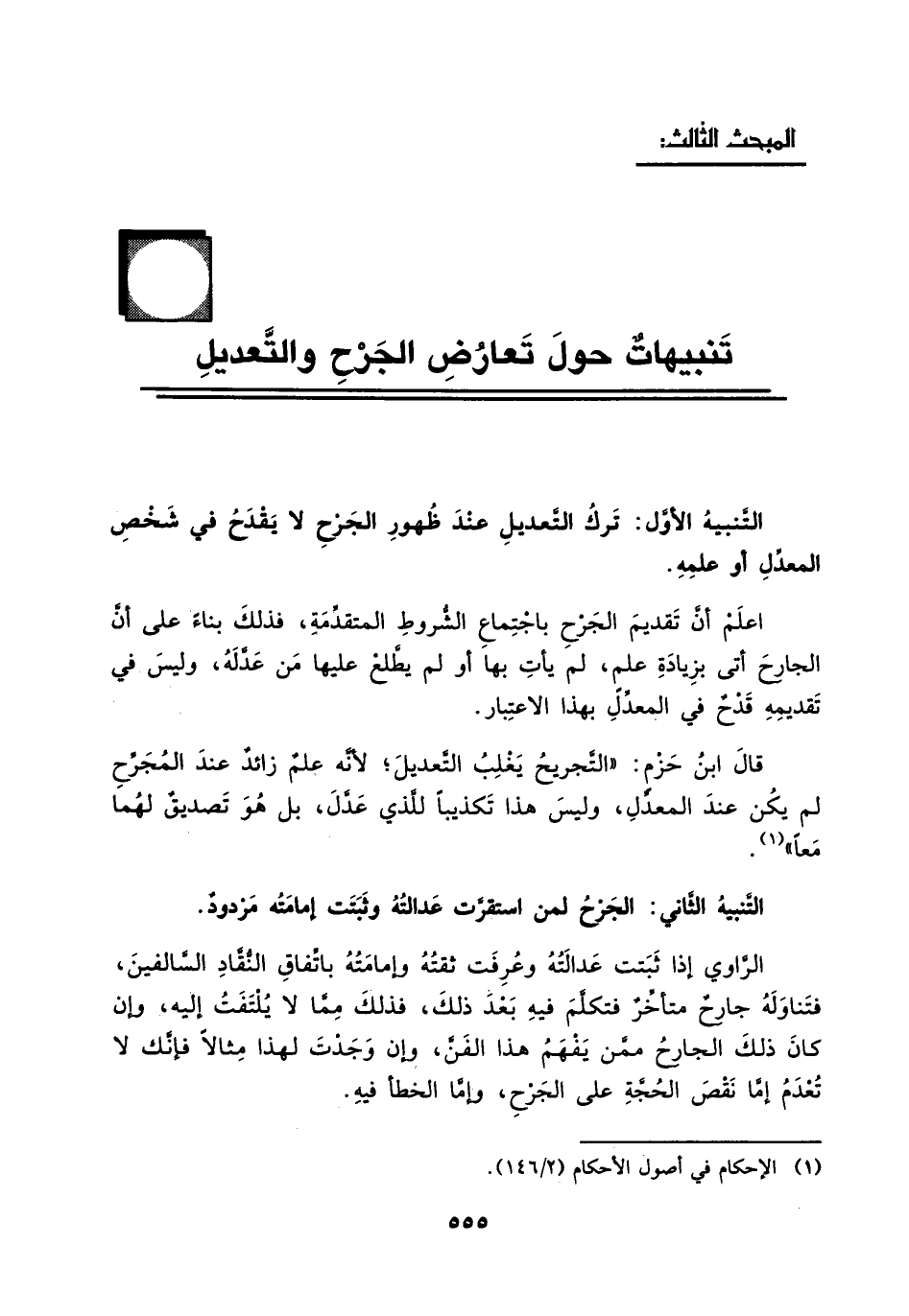 التنبيه الأول: ترك التعديل عند ظهور الجرح لا يقدح في شخص المعدل أو علمه.