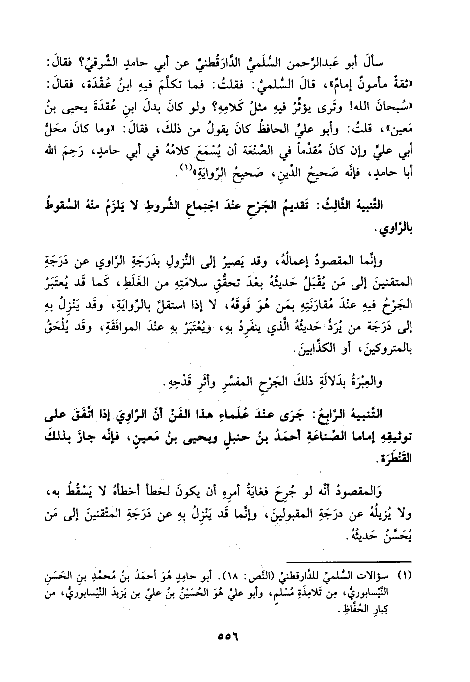 التنبيه الرابع: جرى عند علماء هذا الفن أن الراوي إذا اتفق على توثيقه إماما الصناعة أحمد بن حنبل ويحيى بن معين، فإنه جاز بذلك القنطرة.