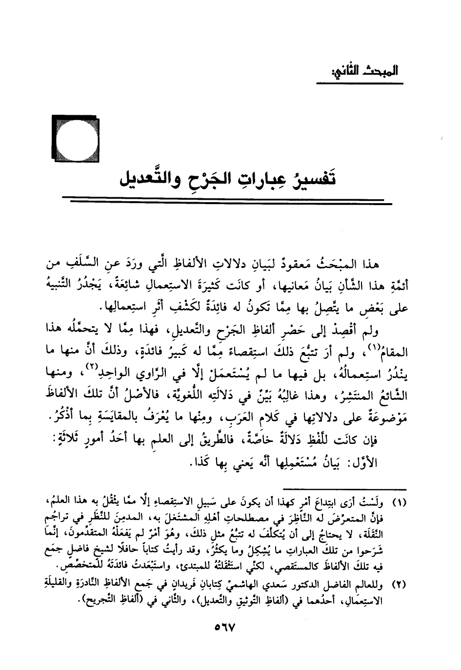 (¬2) وللعالم الفاضل الدكتور سعدي الهاشمي كِتابان فريدان في جمع الألفاظ النادرة والقليلة الاستعمال، أحدهما في (ألفاظ التوثيق والتعديل)، والثاني في (ألفاظ التجريح).