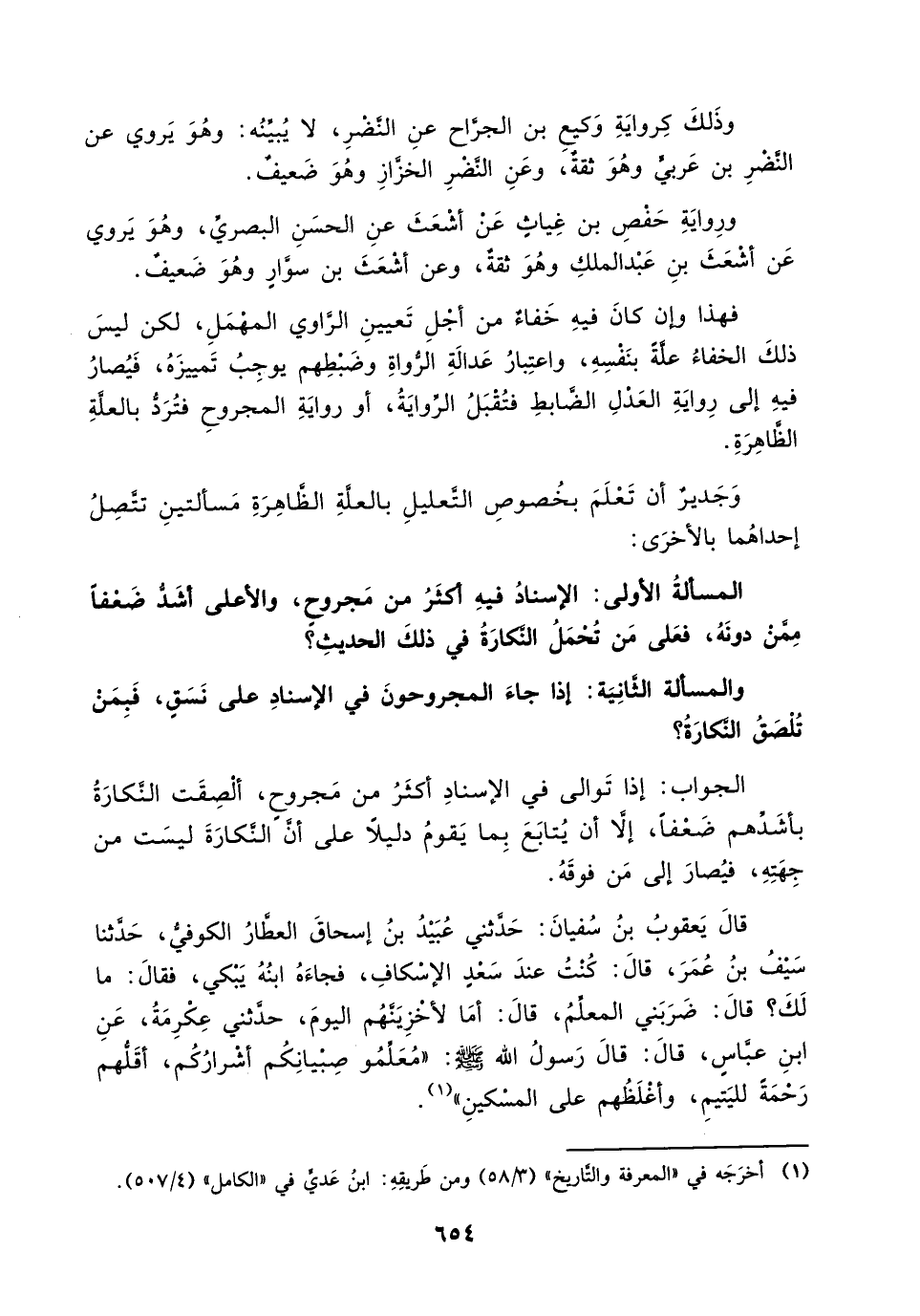 فهذا وإن كان فيه خفاء من أجل تعيين الراوي المهمَل، لكن ليس ذلك الخفاء علة بنفسه، واعتبار عدالة الرواة وضبطهم يوجب تمييزه، فيصار فيه إلى رواية العدل الضابط فتقبل الرواية، أو رواية المجروح فترد بالعلة الظاهرة.