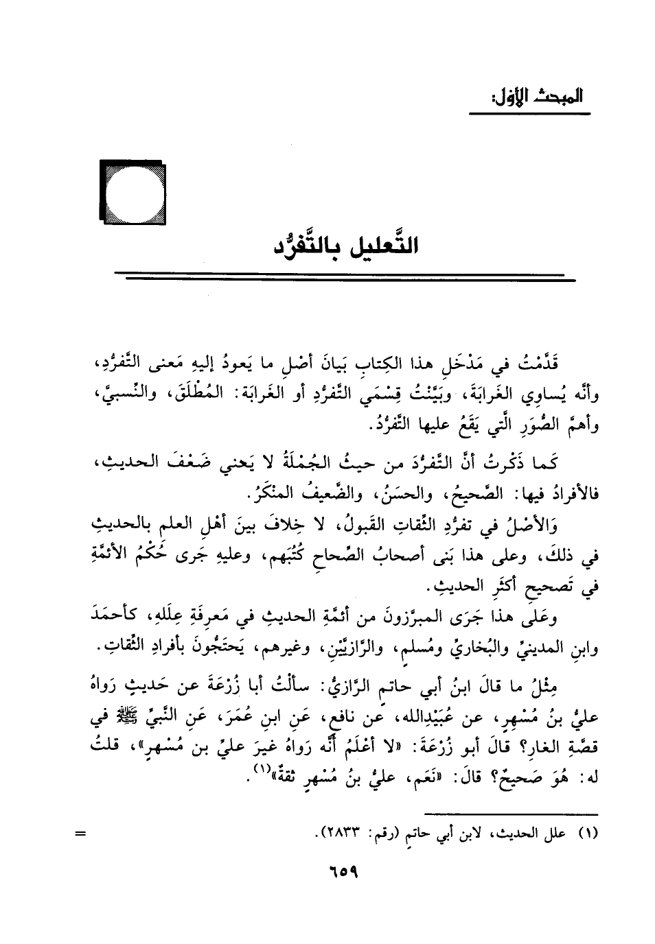 وعلى هذا جرى المبرزون من أئمة الحديث في معرفة علله، كأحمد وابن المديني والبخاري ومسلم، والرازيين، وغيرهم، يحتجون بأفراد الثقات.