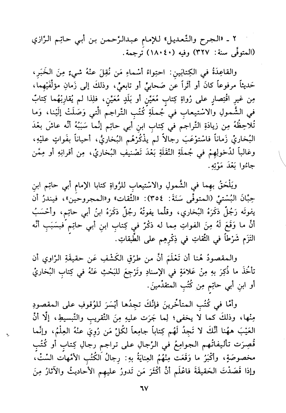 2 _ " الجرح والتعديل" للإمام عبد الرحمن بن أبي حاتم الرازي (المتوفى سنة: 327) وفيه (18040) ترجمة.