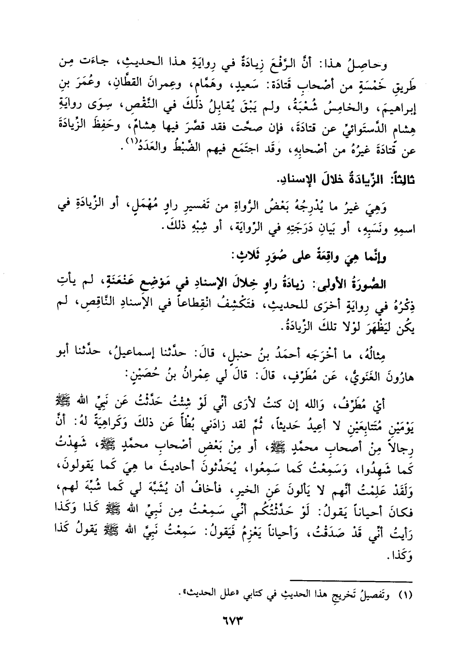 وحاصل هذا: أن الرفع زيادة في رواية هذا الحديث، جاءت من طريق خمسة من أصحاب قتادة: سعيد، وهمام، وعمران القطان، وعمر بن إبراهيم، والخامس شعبة، ولم يبق يقابل ذلك في النقص، سوى رواية هشام الدستوائي عن قتادة، فإن صحت فقد قصر فيها هشام، وحفظ الزيادة عن قتادة غيره من أصحابه، وقد اجتمع فيهم الضبط والعدد (¬1).