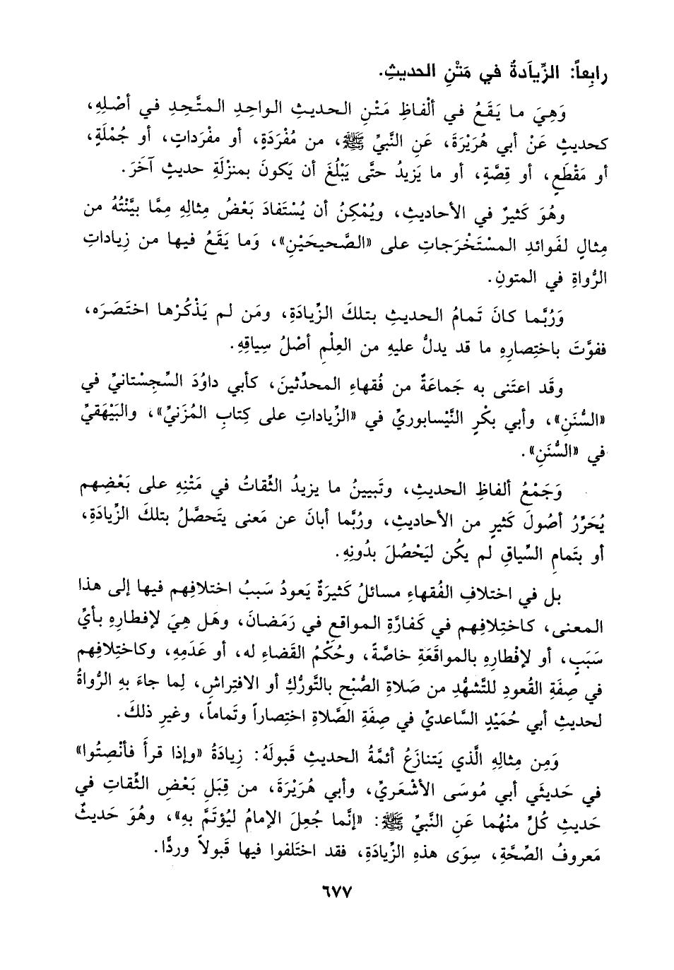 وربما كان تمام الحديث بتلك الزيادة، ومن لم يذكرها اختصره، ففوت باختصاره ما قد يدل عليه من العلم أصل سياقه.
