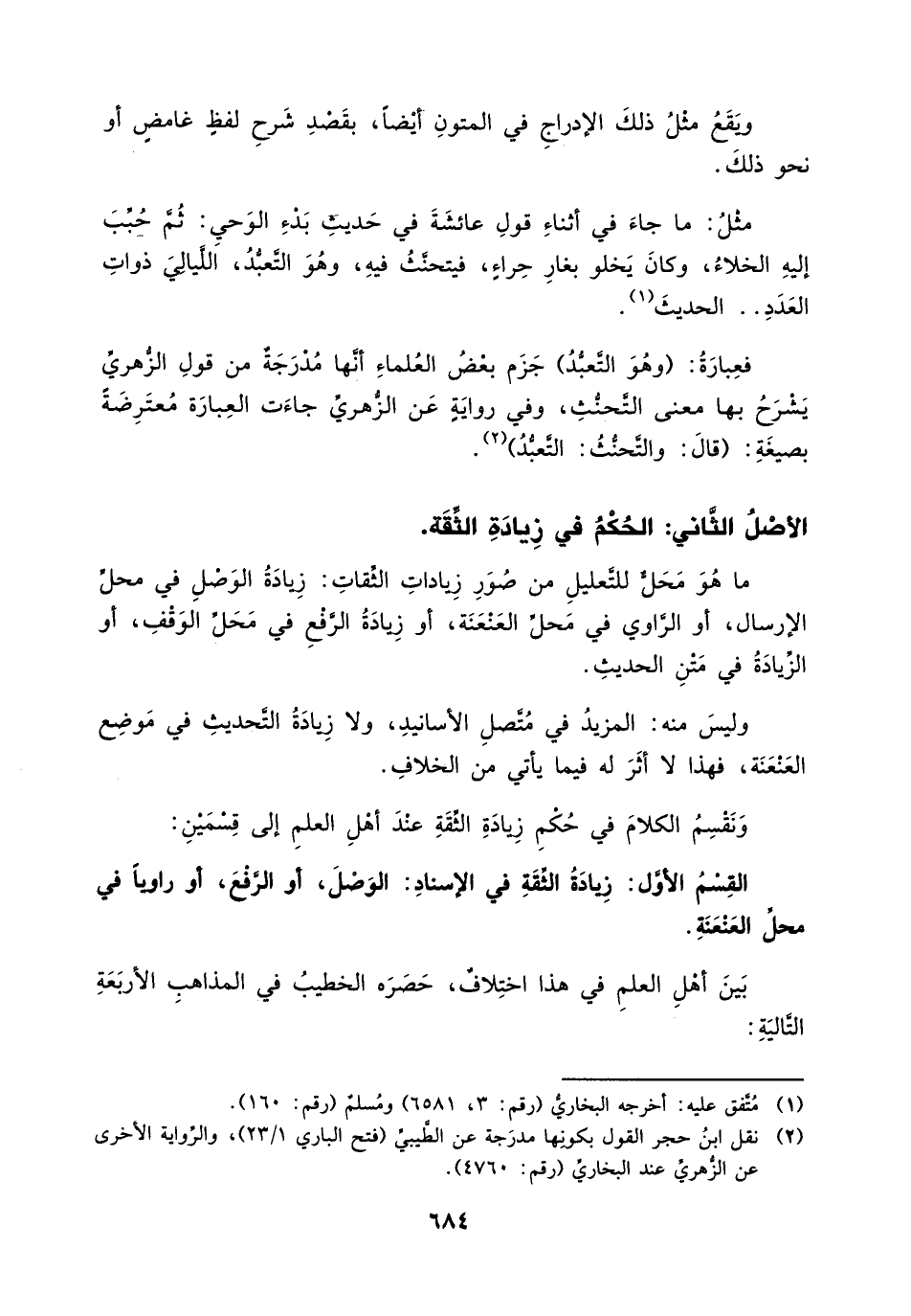 فعبارة: (وهو التعبد) جزم بعض العلماء أنها مدرجة من قول الزهري يشرح بها معنى التَّحنُّث، وفي رواية عن الزهري جاءت العبارة معترضة بصيغة: (قال: والتَّحنُّث: التعبد) (¬2).