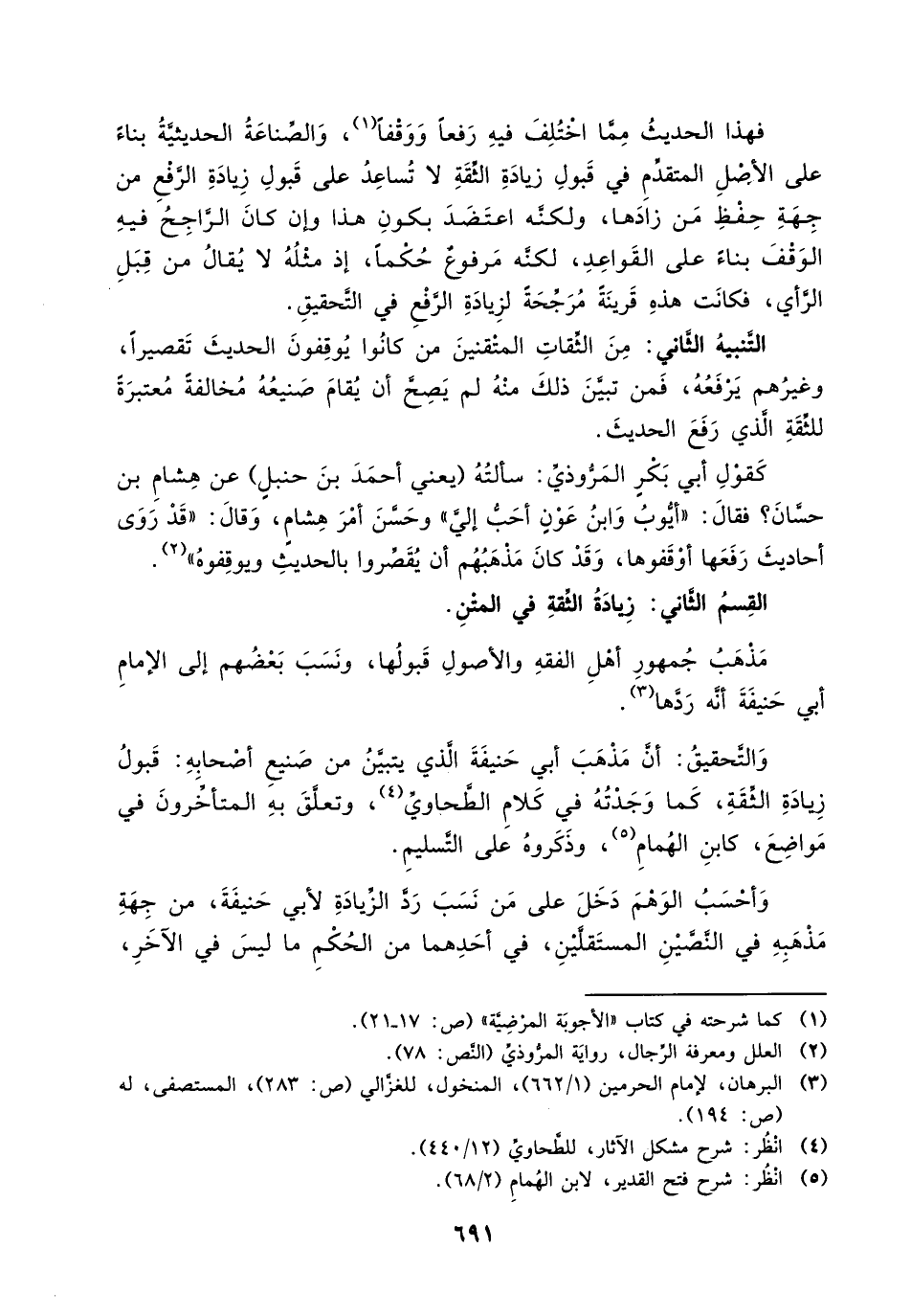 وأحْسب الوهْم دخل على من نسب ردَّ الزيادة لأبي حنيفة، من جهة مذْهبه في النَّصَّين المستقلين، في أحدهما من الحُكم ما ليس في الآخر،