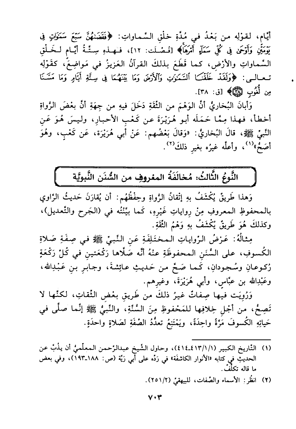 (¬1) التاريخ الكبير (1/ 1 / 413 _ 414)، وحاول الشيخ عبد الرحمن المعلمي أن يذُبَّ عن الحديث في كتابه " الأنوار الكاشفة " في رده على أبي ريَّة (ص: 188 _ 193)، وفي بعض ما قاله تكلف.