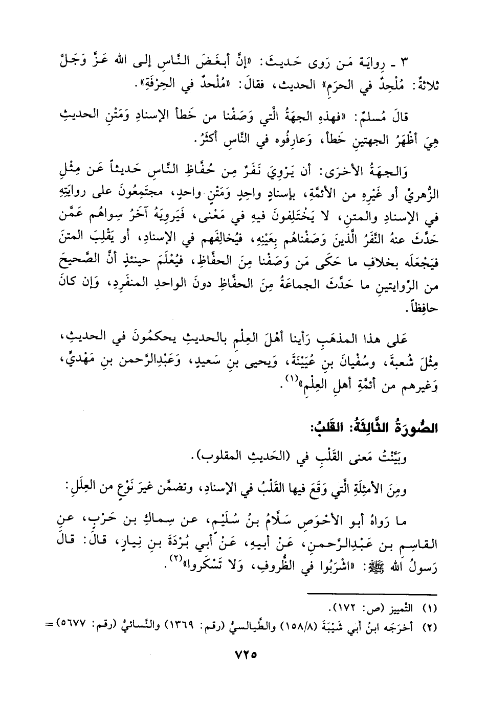 ومن الأمثلة التي وقع فيها القلب في الإسناد، وتضمن غير نوع من العلل: