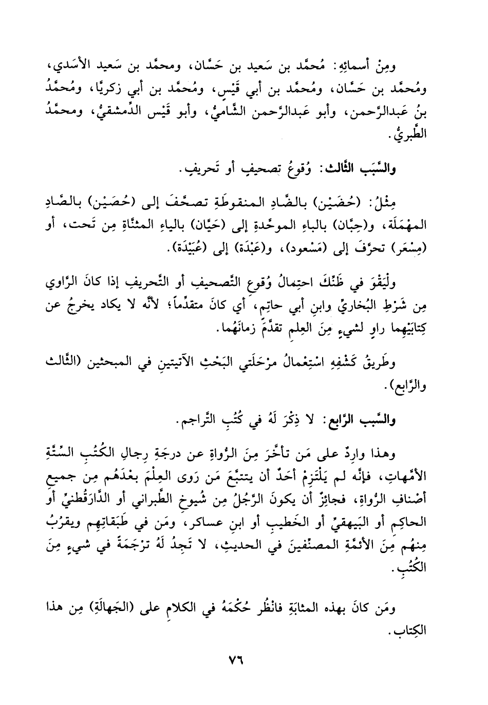 وليقوَ في ظنك احتمال وقوع التصحيف أو التحريف إذا كان الراوي من شرط البخاري وابن أبي حاتم، أي كان متقدماً؛ لأنه لا يكاد يخرج عن كتابيهما راوٍِ لشيء من العلم تقدم زمانها.