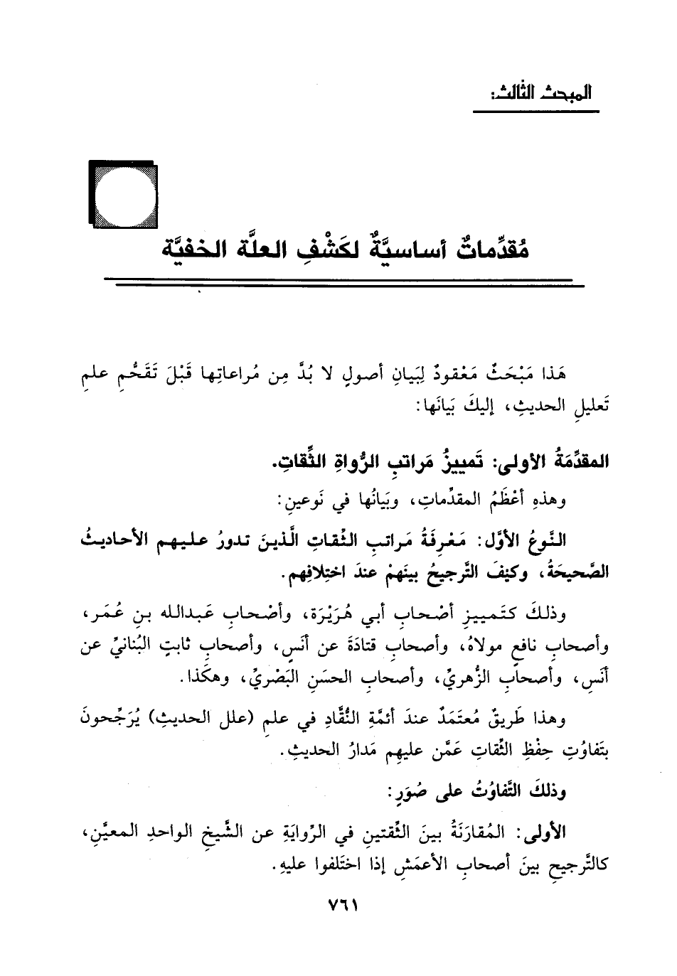 هذا مبحث معقود لبيان أصول لا بد من مراعاتها قبل تقحم علم تعليل الحديث، إليك بيانها:
