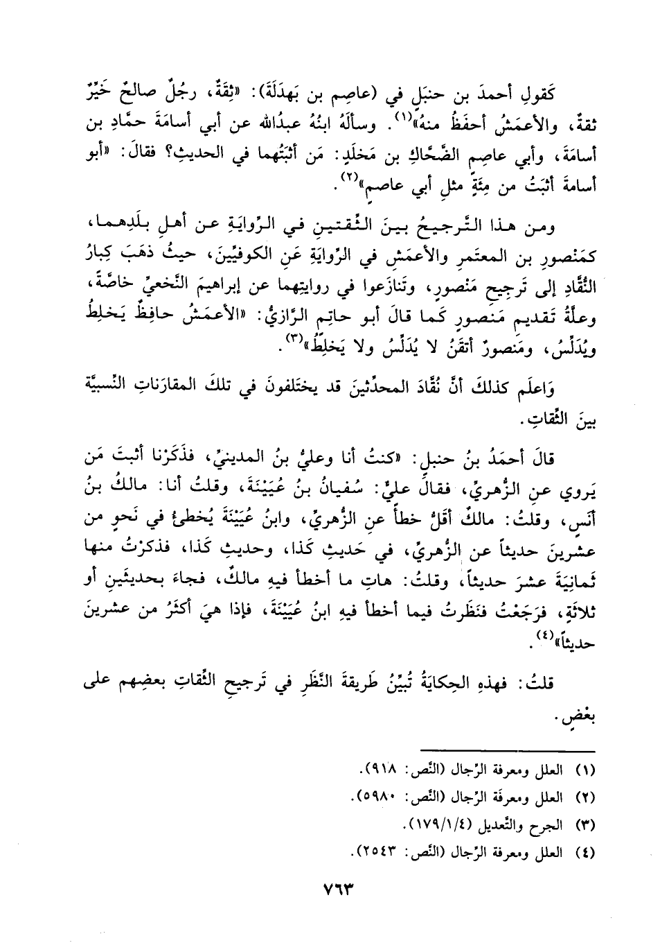 واعلم كذلك أن نقاد المحدثين قد يختلفون في تلك المقارنات النسبية بين الثقات.