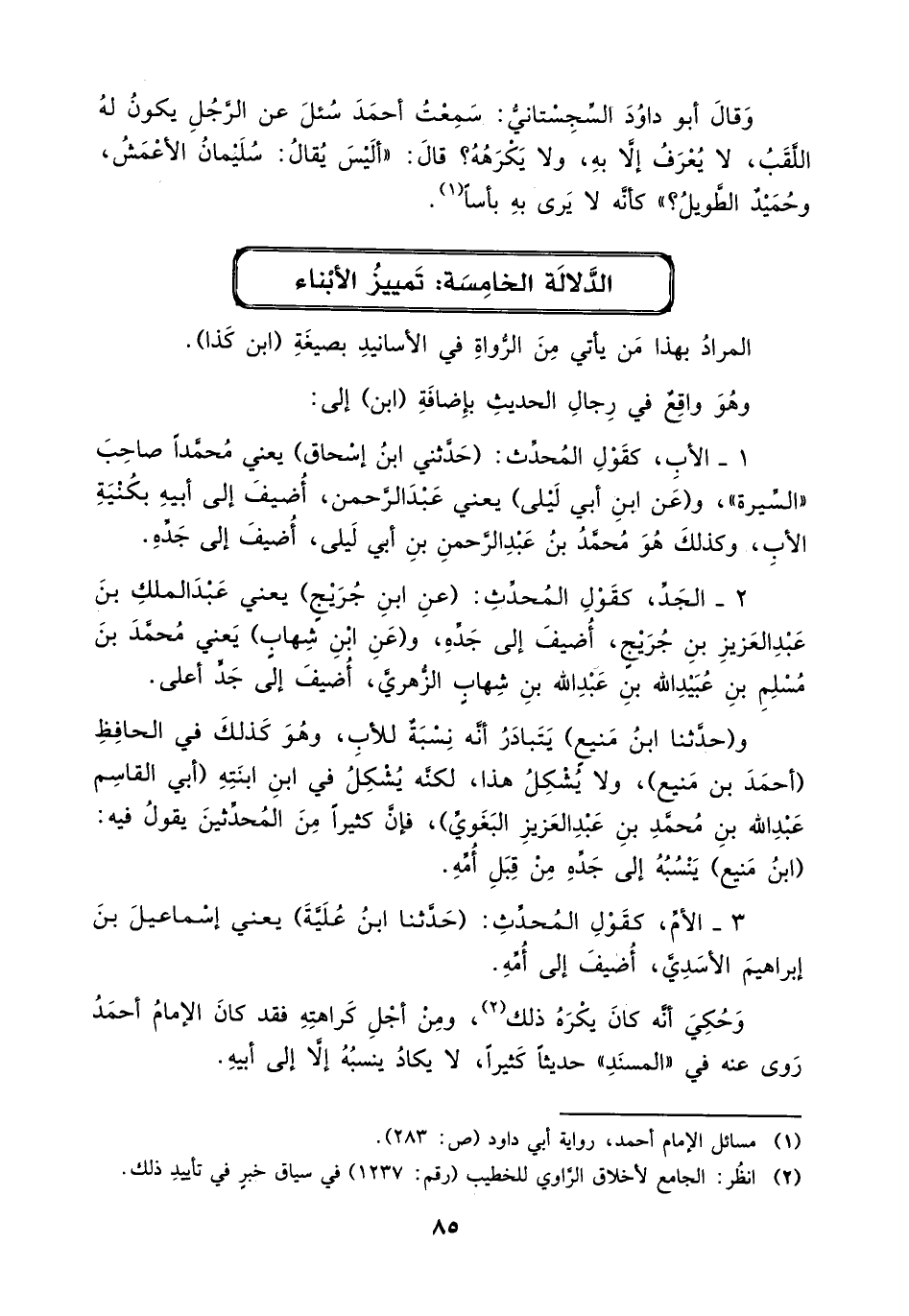 3 _ الأم، كقول المحدث: (حدثنا ابن علية) يعني إسماعيل بن إبراهيم الأسدي، أضيف إلى أمه.
