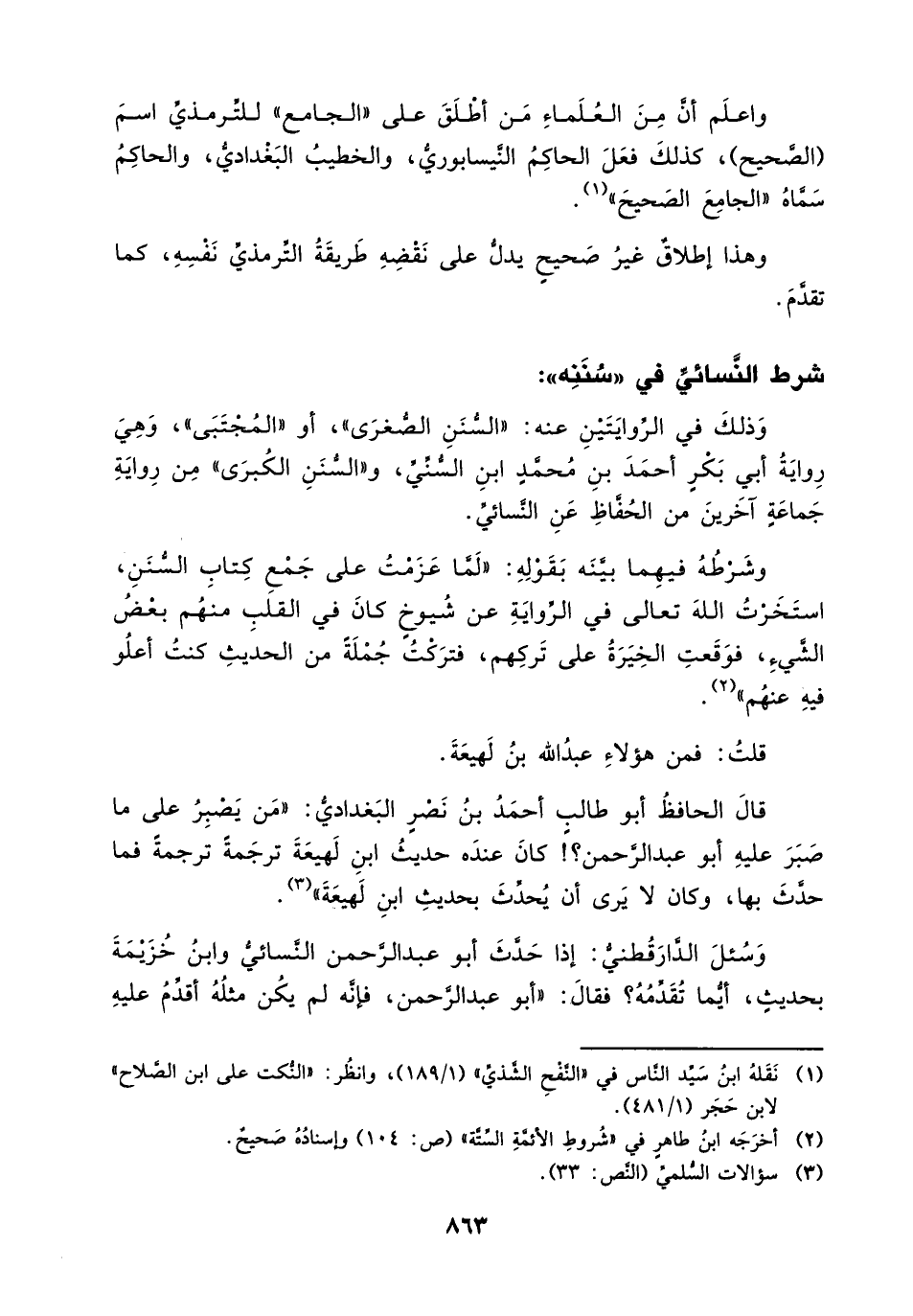 وذلك في الروايتين عنه: " السنن الصغرى "، أو " المجتبى "، وهي رواية أبي بكر أحمد بن محمد بن السني، و " السنن الكبرى " من رواية جماعة آخرين من الحفاظ عن النسائي.