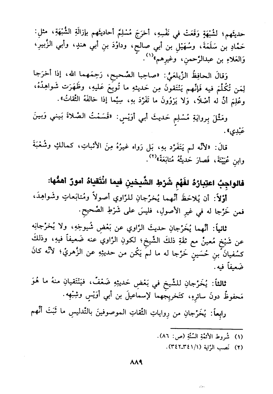 وقال الحافظ الزيلعي: " صاحبا الصحيح، رحمهما الله، إذا أخرجا لمن تكلم فيه فإنهم ينتقون من حديثه ما توبع عليه، وظهرت شواهده، وعلم أن له أصلاً، ولا يروون ما تفرد به سيما إذا خالفه الثقات ".