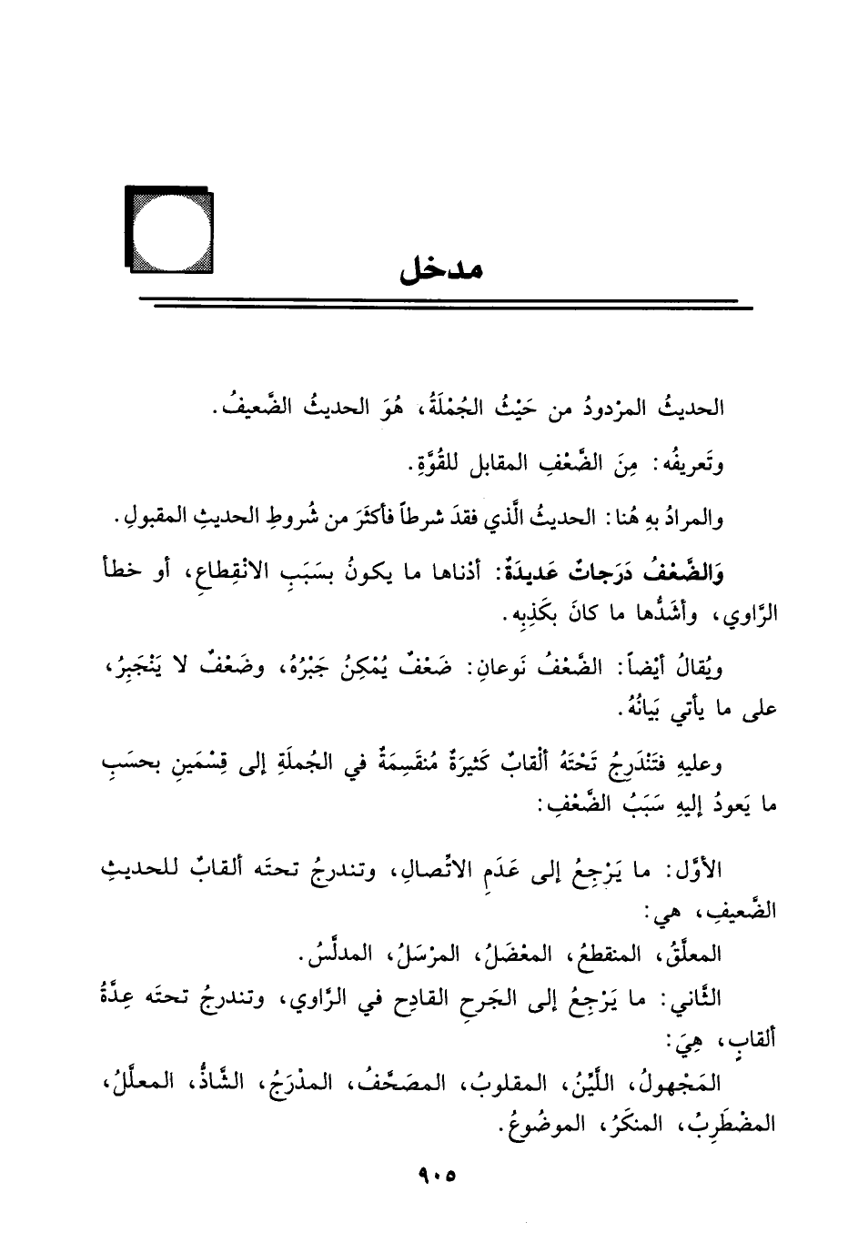 الحديث المردود من حيث الجملة، هو الحديث الضعيف.