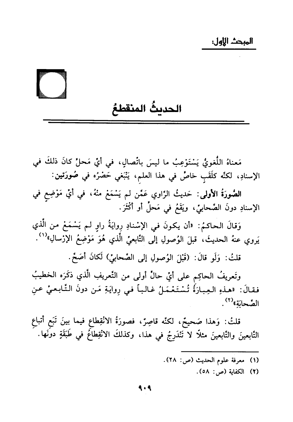 قلت: وهذا صحيح، لكنه قاصر، فصورة الانقطاع فيما بين تبع أتباع التابعين والتابعين مثلاً لا تندرج في هذا، وكذلك الانقطاع في طبقة دونها.