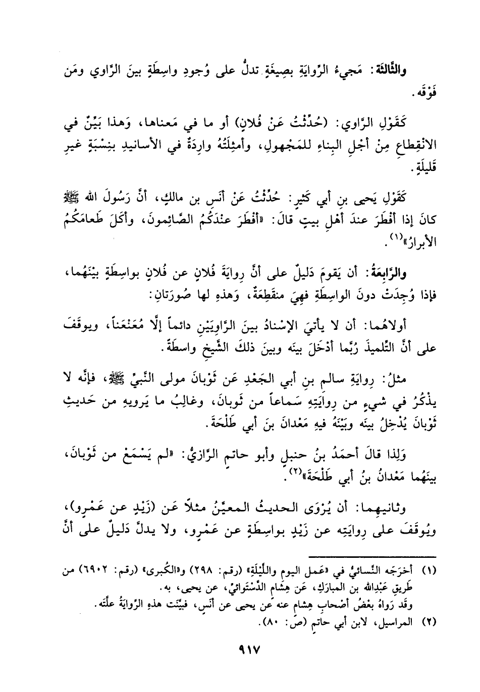 وثانيهما: أن يروى الحديث المعين مثلاً عن (زيد عن عمرو)، ويوقف على روايته عن زيد بواسطة عن عمرو، ولا يدل دليل على أن