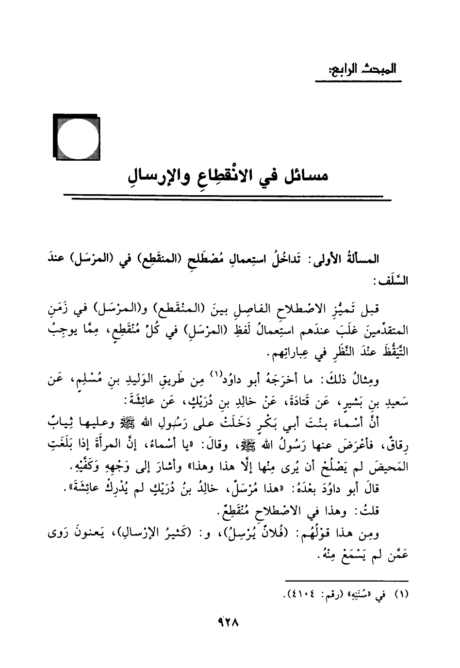 المسألة الأولى: تداخلُ استعمال مصطلح (المنقطع) في (المرسل) عند السلف: