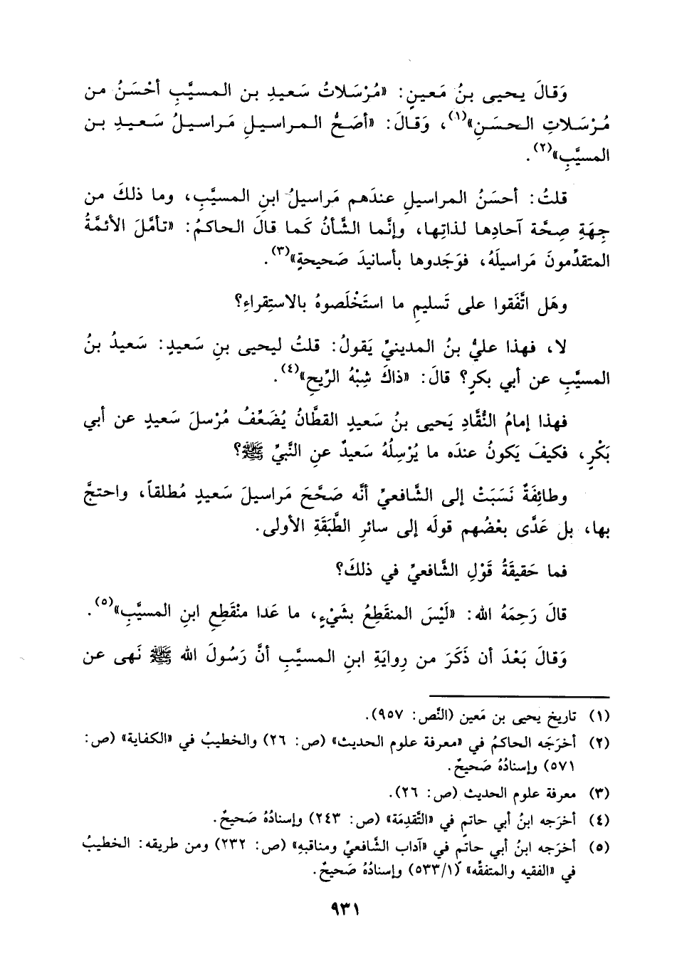 وقال يحيى بن معين: " مرسلات سعيد بن المسيب أحسن من مرسلات الحسن " (¬1)، وقال: " أصح المراسيل مراسيل سعيد بن المسيب " (¬2).