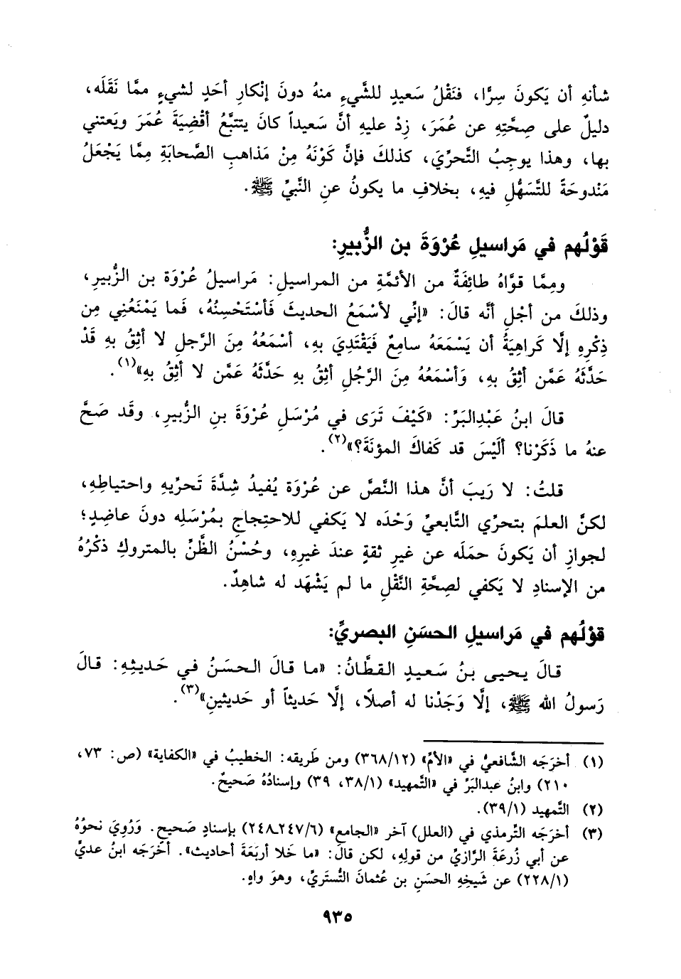 قال ابن عبد البر: " كيف ترى في مرسل عروة بن الزبير، وقد صح عنه ما ذكرنا؟ أليس قد كفاك المؤنة؟ " (¬2).