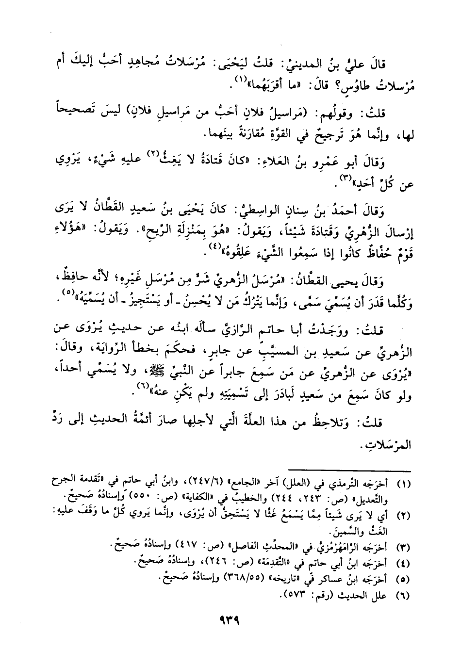 قلت: وتلاحظ من هذا العلة التي لأجلها صار أئمة الحديث إلى رد المرسلات.