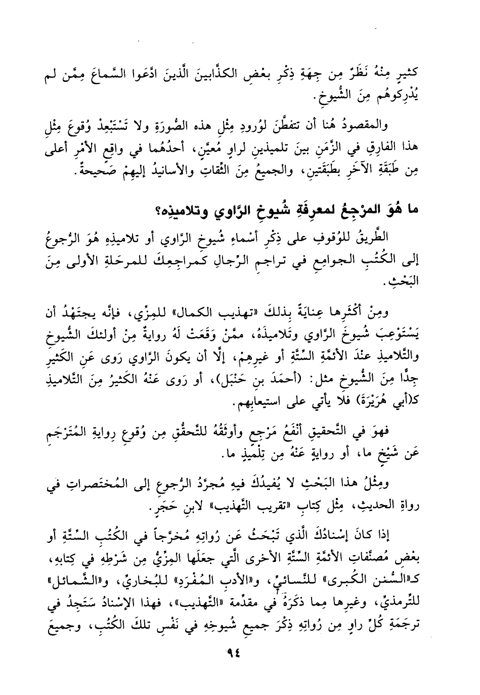 ما هو المرجع لمعرفة شيوخ الراوي وتلاميذه؟