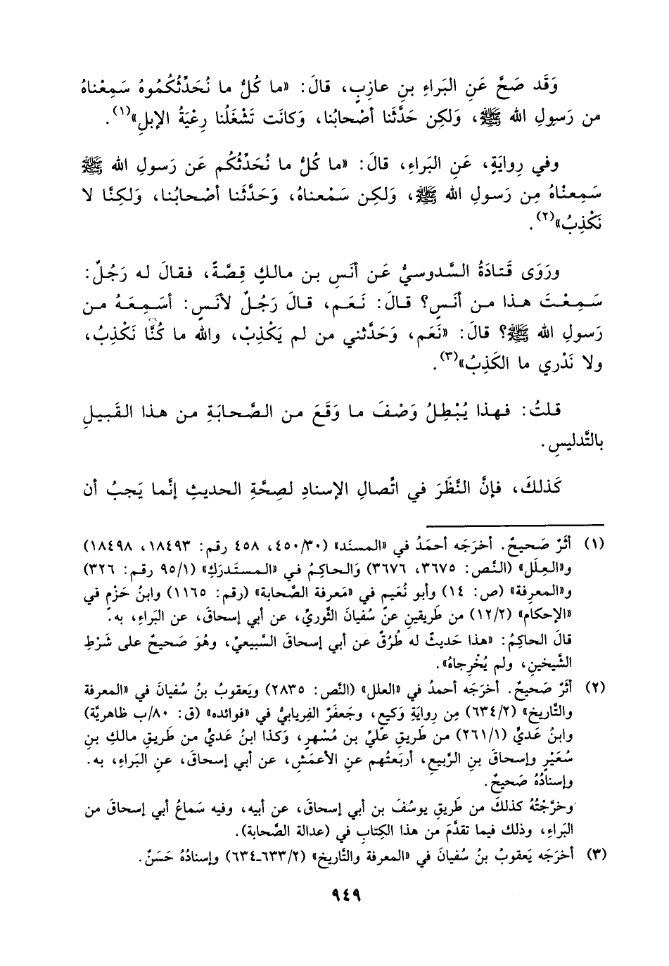 قلت: فهذا يبطل وصف ما وقع من الصحابة من هذا القبيل بالتدليس.