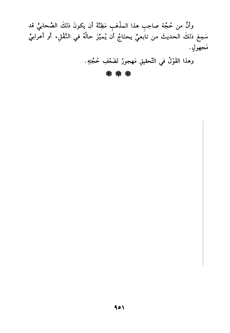 وأن من حجة صاحب هذا المذهب مظنة أن يكون ذلك الصحابي قد سمع ذلك الحديث من تابعي يحتاج أن يميز حاله في النقل، أو أعرابي مجهول.